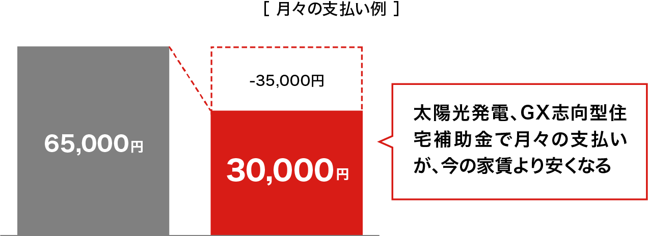 つまり、"家賃以下の住宅ローンの実現"="無理のない新築生活"。無理のない支払いで、理想のマイホームを手に入れたい方にぴったりの選択です。