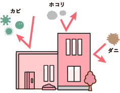 アレルギーの原因となるカビの発生を抑えます。窓を開けない換気なのでホコリも少なく掃除も楽になります。